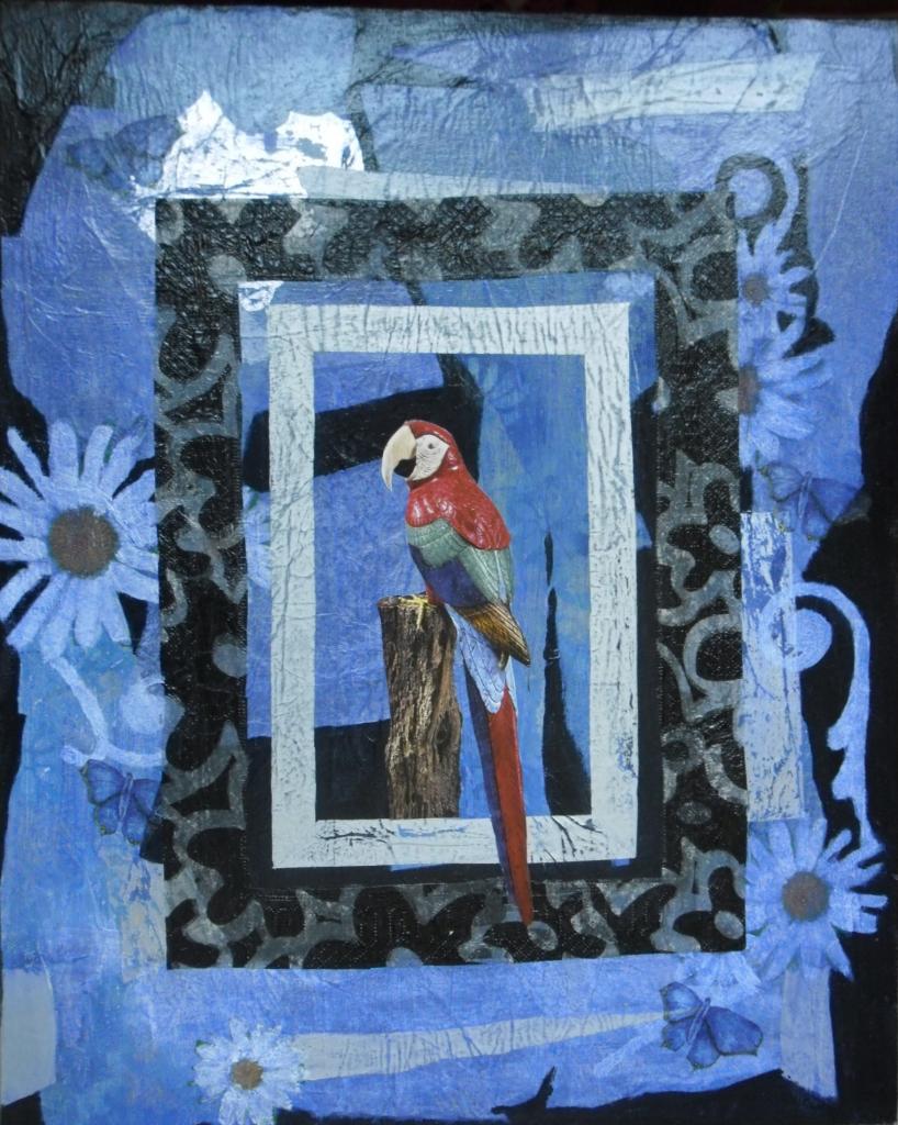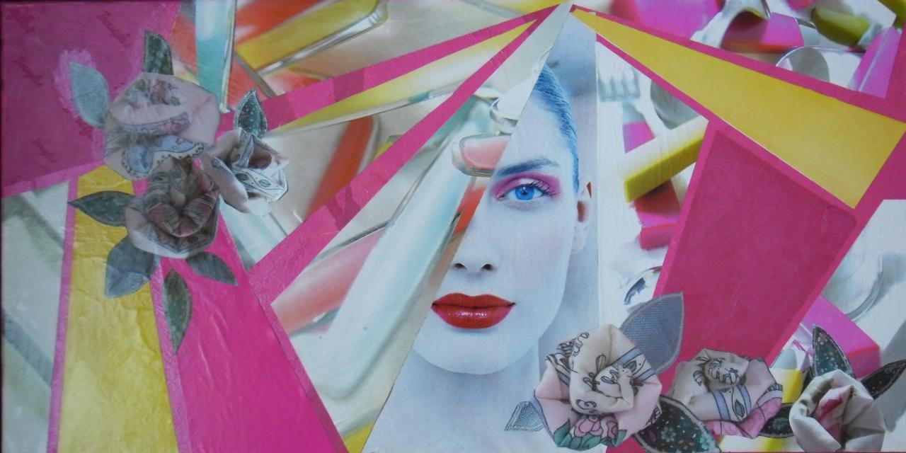 Collage et déchirage de différents papiers colorés, déchirés dans des pubs et images de magazines, plus (papier de soie, papier journal, serviettes, décopatch, chromos, dentelle de patissiers...). Les couleurs du papier remplacent la peinture sur feuilles ou sur toile, Je cherche la couleur que je souhaite poser sur le papier. Au fur et à mesure je déchire, je compose et agence les éléments de papier, j'attends qu'un élément soit à la bonne place avant de coller au bindex ou avec un bâton de colle. La forme des touches de couleurs est étudiée pour apporter à l’oeuvre le dynamisme et la profondeur souhaitée